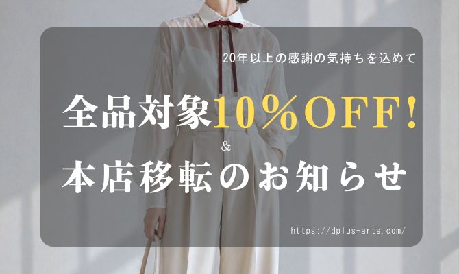 | - What's dplus arts - ネックアクセサリー専門店ディープラスアーツは、「日常に小さなワクワクを!」を コンセプトに、皆様が笑顔になるようなファッション小物を企画販売している日本のブランド。 製造は少量生産で日本各地の職人や工場にて丁寧に仕上げています。 - History - 2005年創業当時はネクタイ専門店として西陣織のネクタイ(3サイズ)やポケットチーフを 中心に展開、お洒落なデザインと伝統工芸の融合を表現しておりました。 現在は、日常から特別の日に楽しめるネックアクセサリー(サイズ展開有り)や ネックウェアをご提案しております。 |