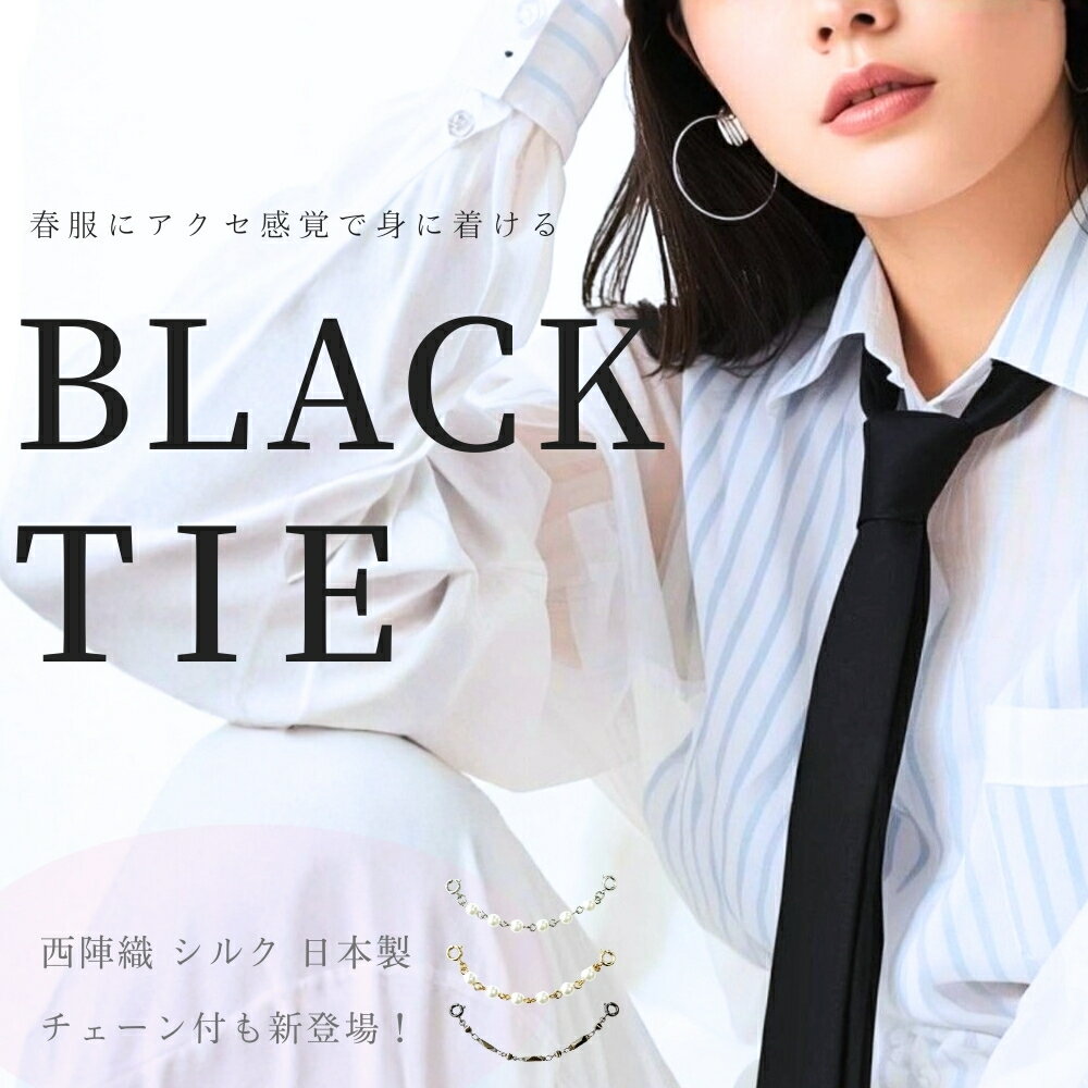 ナロータイ 黒 アクセサリー付 パール風 チェーン 幅5cm 長さ3サイズ シルク製 京都 西陣織 日本製 メンズ レディース パーティー 衣装 モード dplus arts