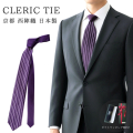 ![]() 凛々しい胸元を演出する、スタイリッシュな縦ストライプ柄 クレリックタイ シルク 西陣織 日本製 メンズ レディース 日本の伝統技術が息づく、京都西陣織 シルクを使用したクレリックタイ。 品格のある縦ストライプ柄と無地小紋を組み合わせたデザインです。 無地ノットが全体を引き締め、凛々しくスタイリッシュなVゾーンを演出してくれます。 「いつも同じネクタイでマンネリ化している」、「周りと差をつけたい」そんなあなたのための 特別な一本です。ビジネスシーンや商談、結婚式などの様々なシーンで自信と品格を与えてくれます。 また、細いネクタイがお好きな方は5cm幅を、標準幅がお好きな方は8cm幅をご用意しております。 ![]() スーツスタイルを一段と引き締めるクレリックタイ。縦ストライプ柄が胸元に立体感を与え、 洗練された印象を演出します。ビジネスシーンはもちろん、式典や会食などフォーマルな場にも ふさわしい一本。日常の通勤から特別なシーンまで幅広く活躍するネクタイです ⇒ ネクタイの結び方はこちら ![]() 京都の伝統的な西陣織 シルク クレリックタイの大剣にはシャープな縦ストライプ柄で胸元をすっきりと知的に演出します。 小剣は一見無地ながら近くで見ると繊細な織り柄が浮かび上がり、さりげない個性をプラス。 ビジネスからフォーマルシーンまで幅広く活躍し、贈り物としても選ばれる上質な一本です。 丁寧な縫製、京都 日本製 生地を織り上げているのは、京都 西陣織の機場さん。 縫製も京都にて丁寧に仕上げていただいています。 海外製が多い衣料品の世界ですが、 ネクタイは京都産を身に着けて 日本の伝統をファッションを通して楽しんでみませんか。 ![]() 西陣織 にしじんおりとは 西陣織は京都市北西部の西陣地域で生産される高級絹織物の総称です。 美しく染めた糸を使い豪華で立体的な模様を織り出すことが特徴で帯や着物、 ネクタイ、ショールなど多彩な製品が展開されています。 また、「西陣」や「西陣織」は西陣織工業組合の登録商標で同組合に 所属する業者のみが西陣織ブランドを名乗ることができます。 COLOR VARIATION ![]() パープル ■ こちらもおすすめのネクタイやチーフ