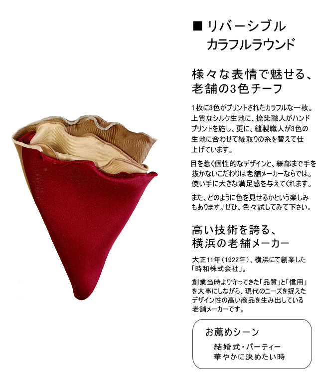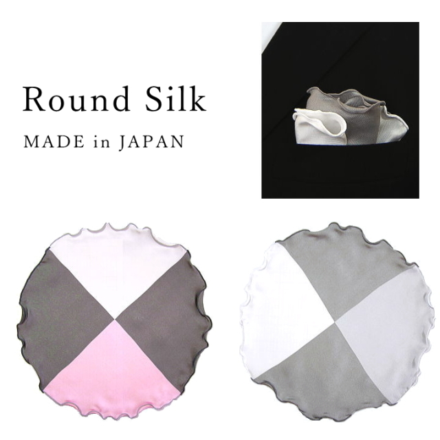 ポケットチーフ 結婚式 シルク 円形 ラウンド カラフル メンズ レディース フォーマル プレゼント 衣装 日本製 メール便