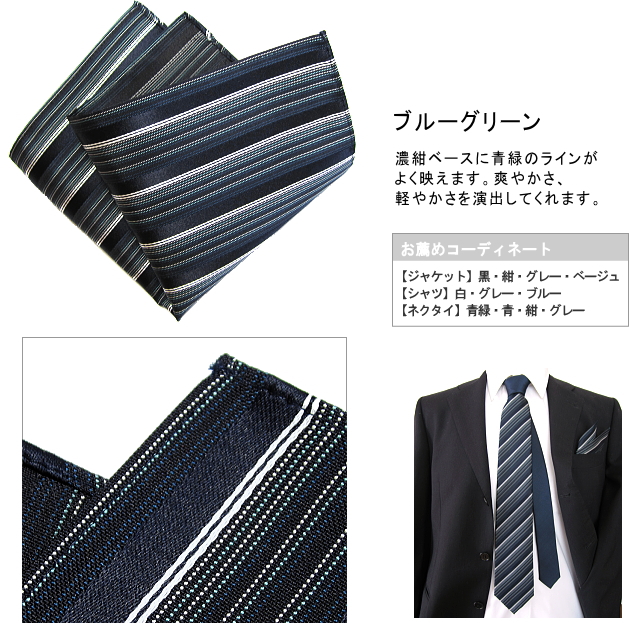 ![]() ポケットチーフ シルク ストライプ 柄 絹 西陣織 日本製 メンズ さりげなく、控えめでありながらも、主役の魅力をいっそう際立たせる。 そんな「名脇役」のような存在感を放つ、ストライプ柄のポケットチーフ。 濃紺ベースに繊細なカラーストライプが、品格のある胸元を演出してくれます。 胸ポケットの名脇役を相棒に、スマートなスーツスタイルを楽しんで下さい。 織りと縫製は長い伝統と、確かな技術を誇る京都にて行っております。 お薦めシーン:ビジネス·普段使い·知的・モダンに決めたい時 ![]() COLOR VARIATION ![]() |