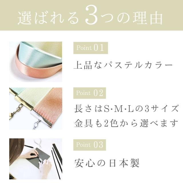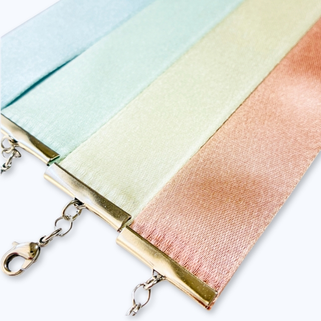 ![]() 結婚式やパーティーシーンを彩る、上品なパステルチョーカー。 肌なじみがいい淡いペールイエローが首元をやさしく明るく見せ、 ドレススタイルを一段と華やかに仕上げます。 「ドレスは決まったけれど首元が寂しい…」そんな悩みも、この一本で解決。 光沢のある質感が写真映えし、他のゲストとさりげなく差がつく洗練された印象に。 首元をすっきり見せながら、特別な一日をより美しく引き立てます。 ![]() このチョーカーには、福井県のリボンメーカーが作る美しいサテンリボンを使用しています。 企画から製造まで自社で一貫して行い、実直な物作りへの姿勢が品質にも表れています。 ![]() 袋織により両面が滑らかなサテン素材です。適度な厚みがあり、 縁も柔らかいため肌あたりが良く、美しい光沢と発色が特徴です。 【袋織りとは】サテンリボンを袋状(筒状)に織り上げる製法で、両面がサテンで 仕立てられている為、自然な厚みと立体感が生まれるのが特徴です。 ![]() 金具の色はゴールドとシルバーの2色から選択可能です。 華やかで温かみのあるゴールドは女性らしさを、 凛とした輝きのシルバーは、肌の透明感を引き立てる洗練された印象。 甘いカラーのリボンも、すっきり大人っぽく仕上げます。 パーソナルカラーや手持ちのアクセに合わせ、理想の首元を叶えます。 ※本ページは金具ゴールドです ![]() このチョーカーには福井県産の美しい光沢のサテンリボンを使用し、 リボンの裁断、金具の取り付け、仕上げの微調整まで、一つひとつの工程を国内の 自社の職人が手間を惜しまず丁寧に行い、完成まで心を込めて仕立てています。 ![]() 首が細い・太い問題を解決してくれる「S・M・L」3サイズからお選びいただけます。 COLOR VARIATION ![]() ![]() PINK ピンク 肌なじみ抜群の大人可愛いピンク。顔周りを明るく華やかに。 ![]() PALE YELLOW ペールイエロー 優しく淡いトーンのペールイエロー。派手すぎず上品な差し色に。 ![]() PALE GREEN ぺーグリーン 光を味方につけて澄んだ印象に。大人の透明感を惹き出すペールカラー。 ![]() POWDER BLUE パウダーブルー 清楚で上品なパウダーブルー。甘さを抑えた知的な首元を演出。 ![]() WHITE ホワイト 圧倒的な清潔感の白色。レフ板効果で顔周りをパッと明るく。 ![]() SILVER シルバー どんなコーデにも馴染む万能シルバー。洗練されたクールな輝きを。 金具シルバーのチョーカーはこちら ![]() サテンチョーカー ペールカラー 日本製 S・M・Lサイズ ⇒すべてのチョーカーはこちら |