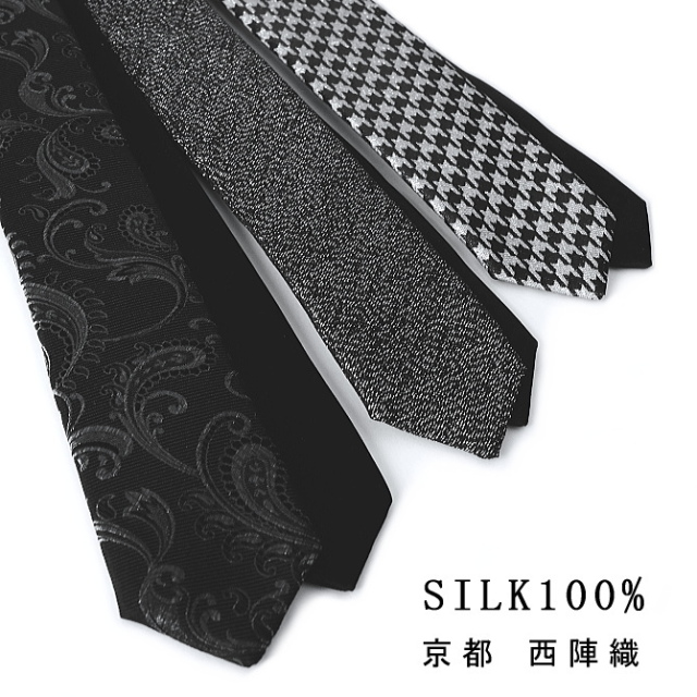 1本で2柄楽しめる 細い ネクタイ ナロータイ シルク ラメ 黒 無地 柄 4cm 2way 京都 西陣織 日本製 メンズ レディース dplus arts メール便